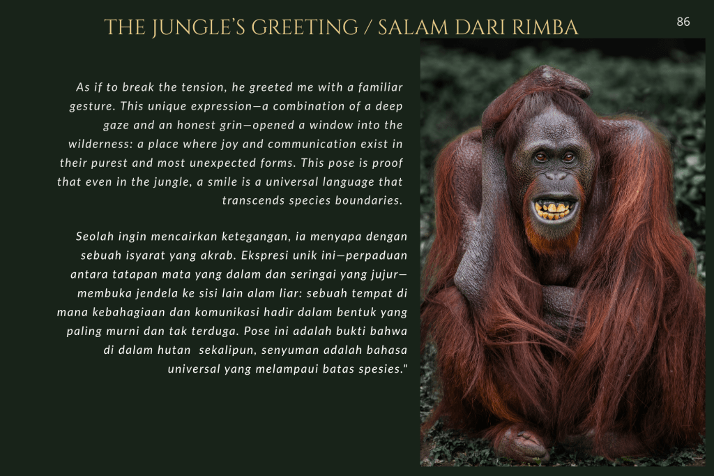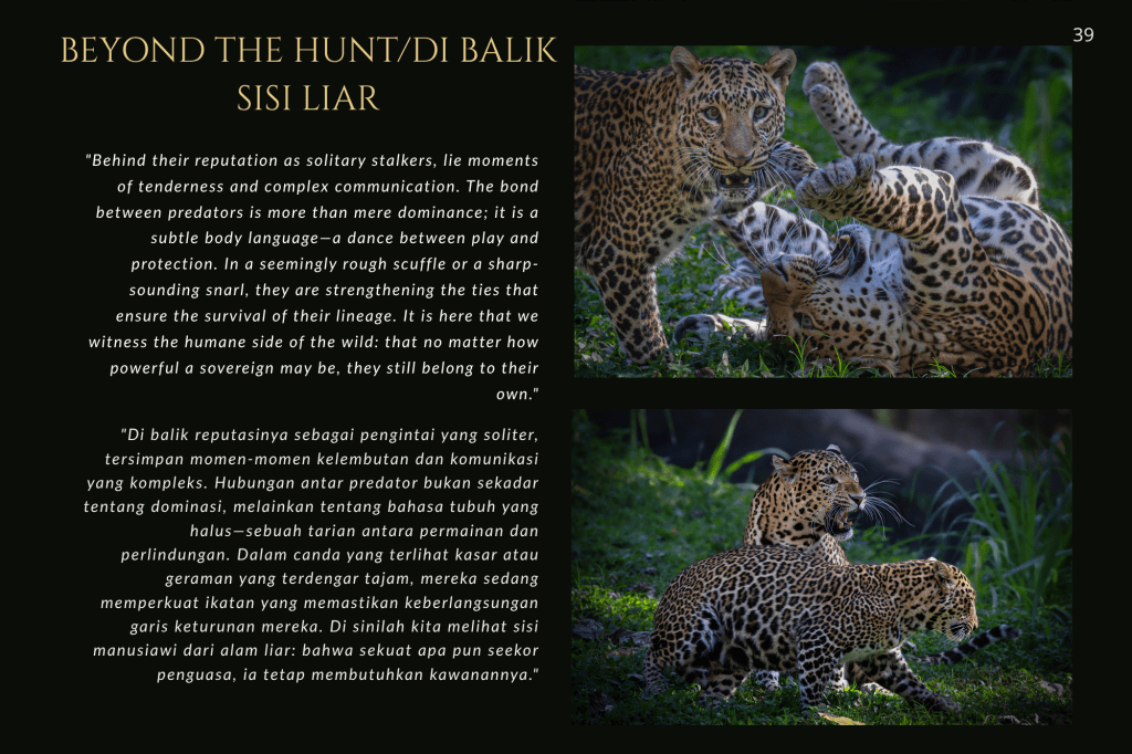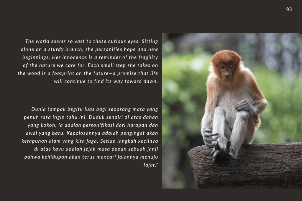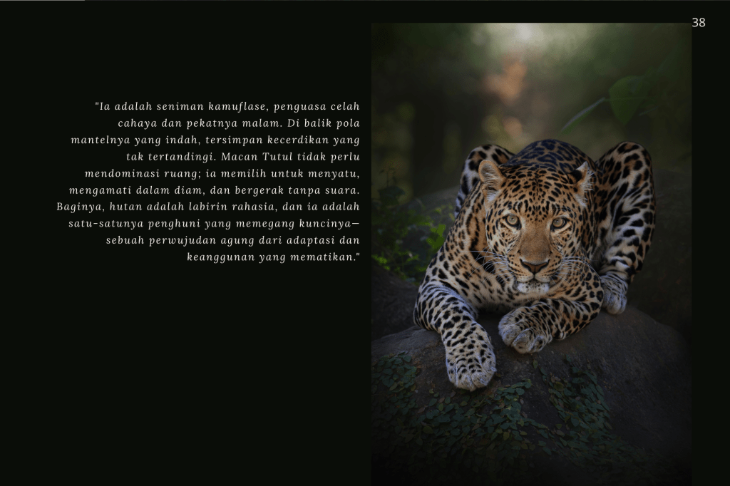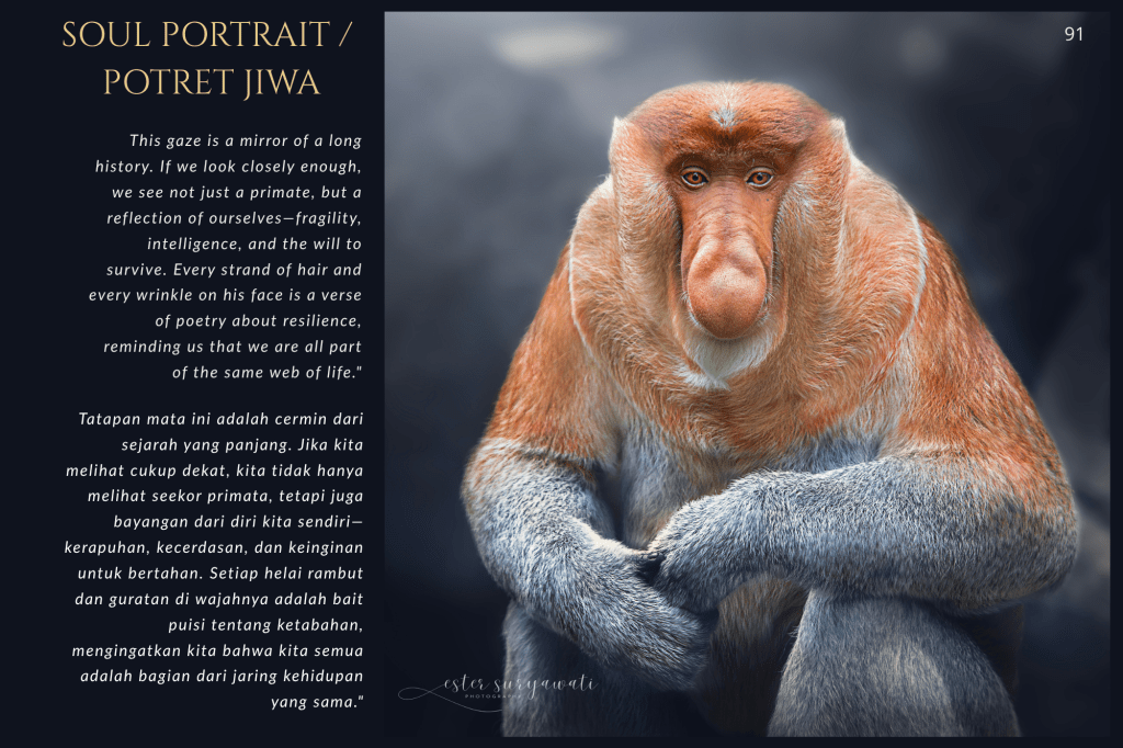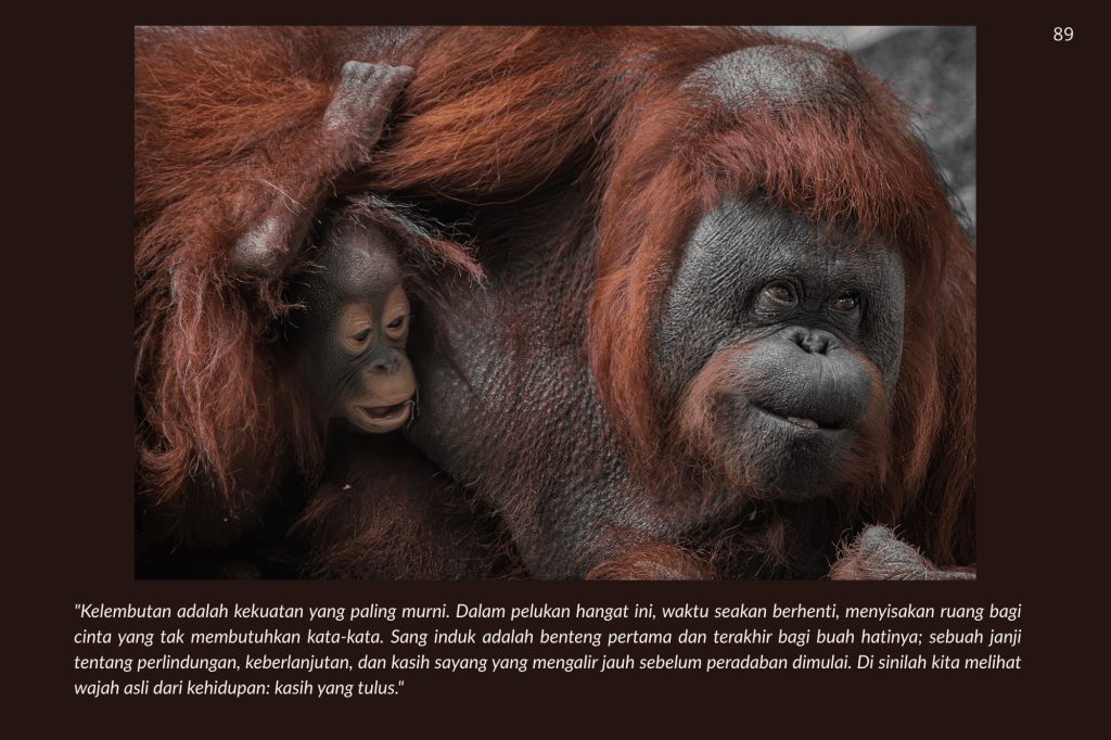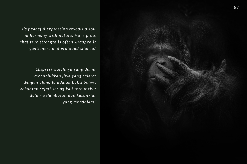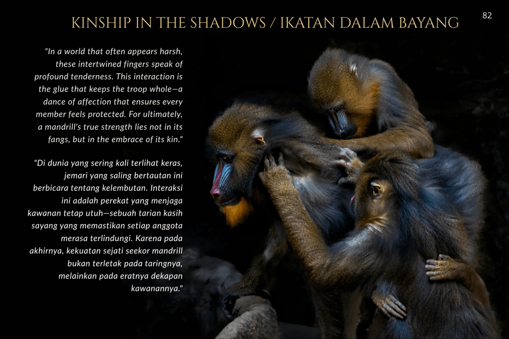 Buku ini, “PRIGEN: The Last Sanctuary”, adalah akumulasi dari kesabaran selama berjam-jam di balik kamera, menunggu momen ketika seekor predator menunjukkan sisi rentannya, atau ketika seekor induk primata memberikan sentuhan paling manusiawi kepada anaknya. Sebagai seorang fotografer, bukan sekadar pencapaian teknis, melainkan tanggung jawab moral untuk menjadi penyambung lidah bagi mereka yang tak bersuara.