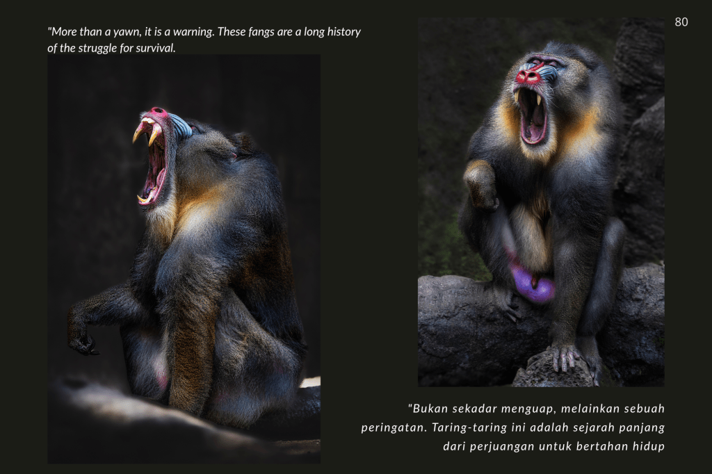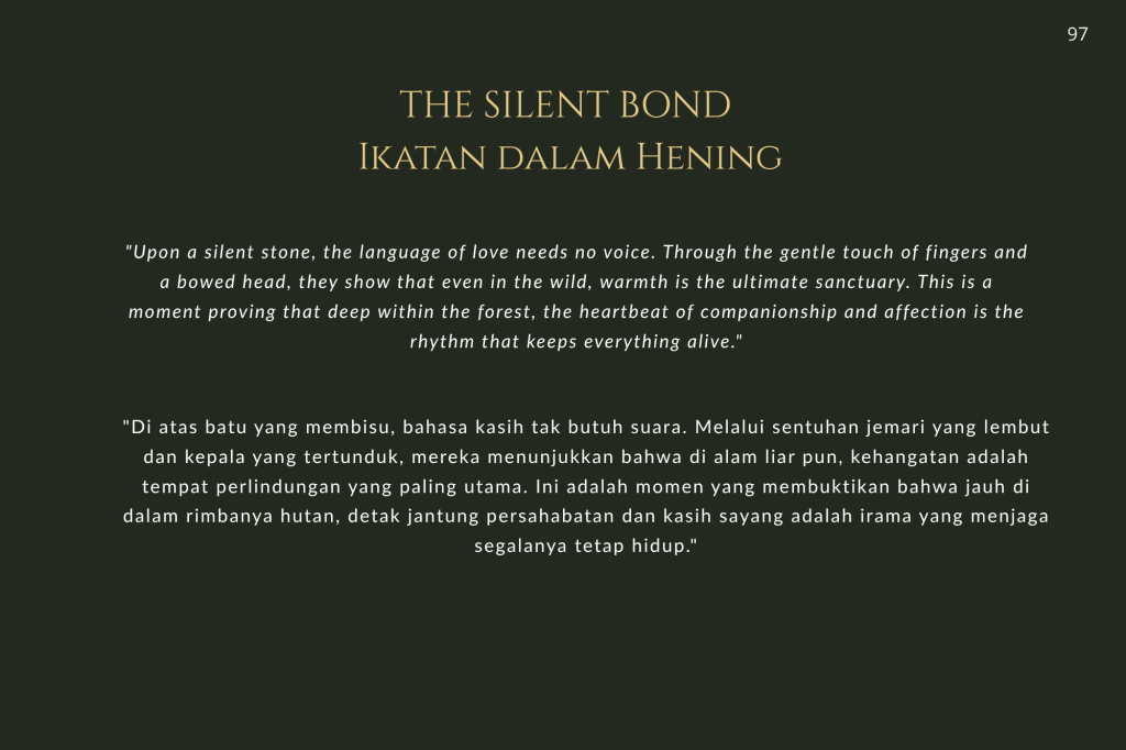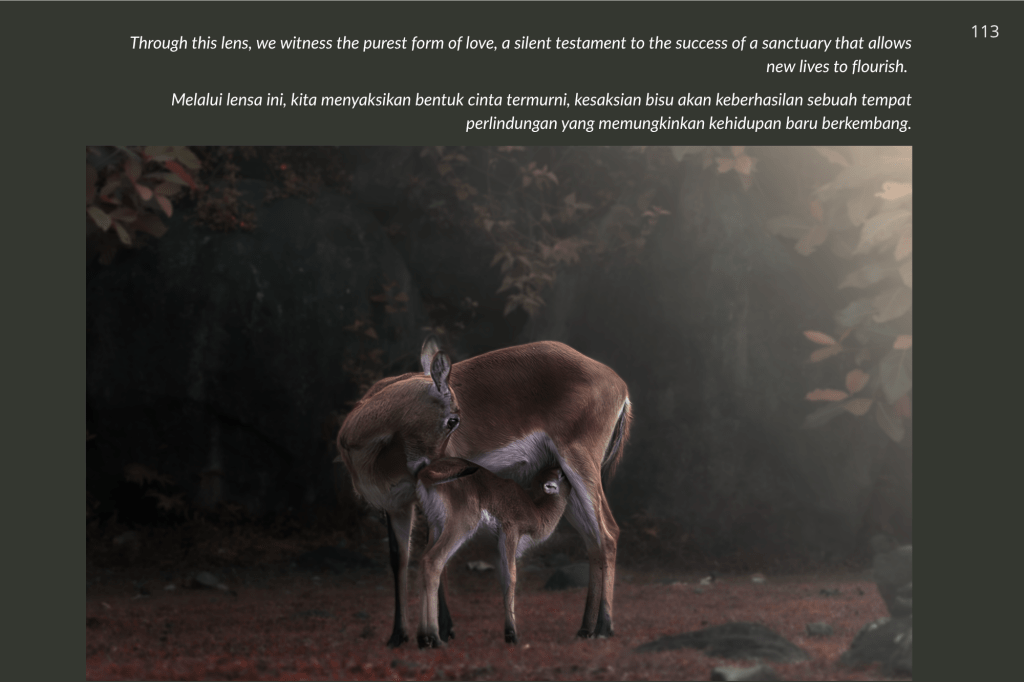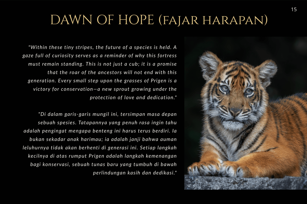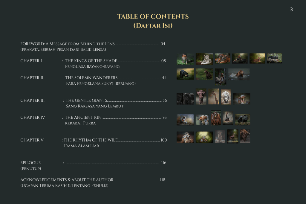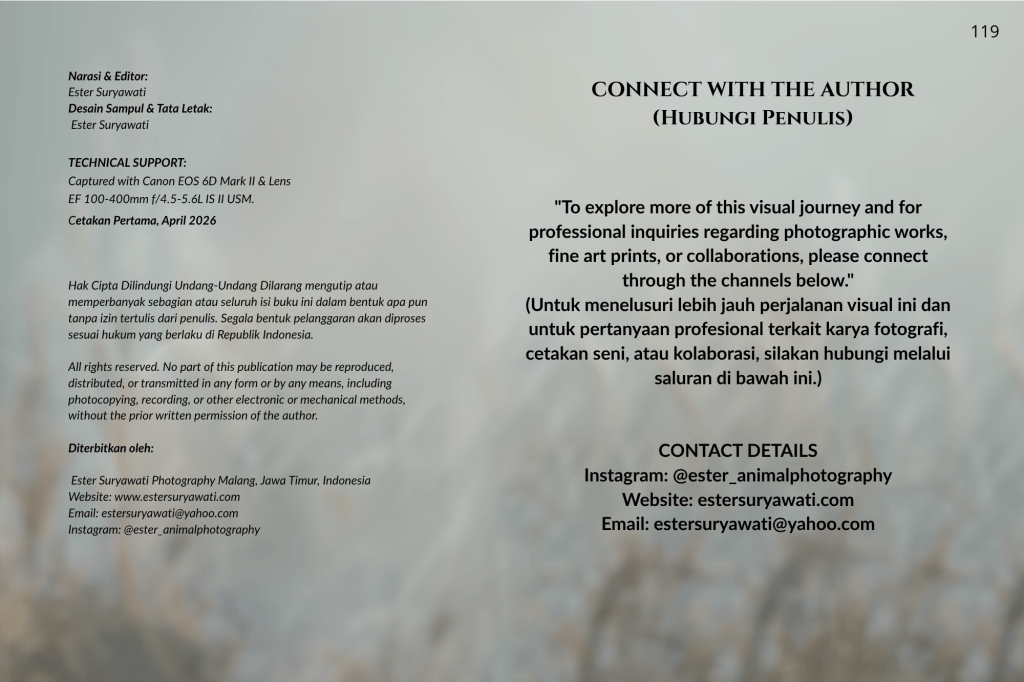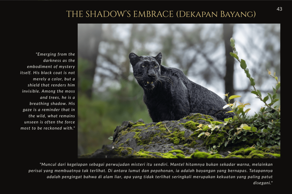 Buku ini, “PRIGEN: The Last Sanctuary”, adalah akumulasi dari kesabaran selama berjam-jam di balik kamera, menunggu momen ketika seekor predator menunjukkan sisi rentannya, atau ketika seekor induk primata memberikan sentuhan paling manusiawi kepada anaknya. Sebagai seorang fotografer, bukan sekadar pencapaian teknis, melainkan tanggung jawab moral untuk menjadi penyambung lidah bagi mereka yang tak bersuara.