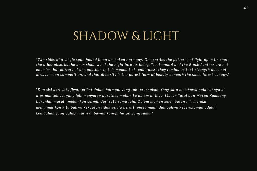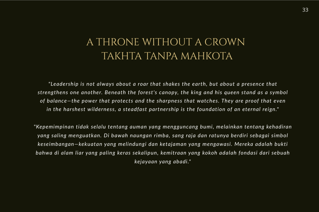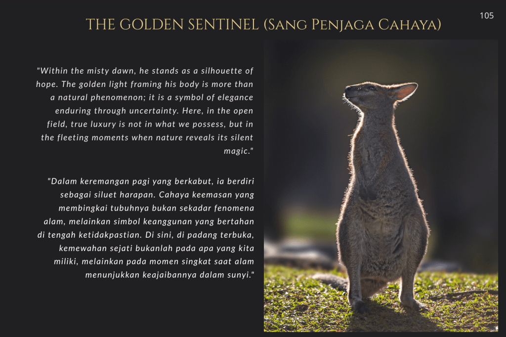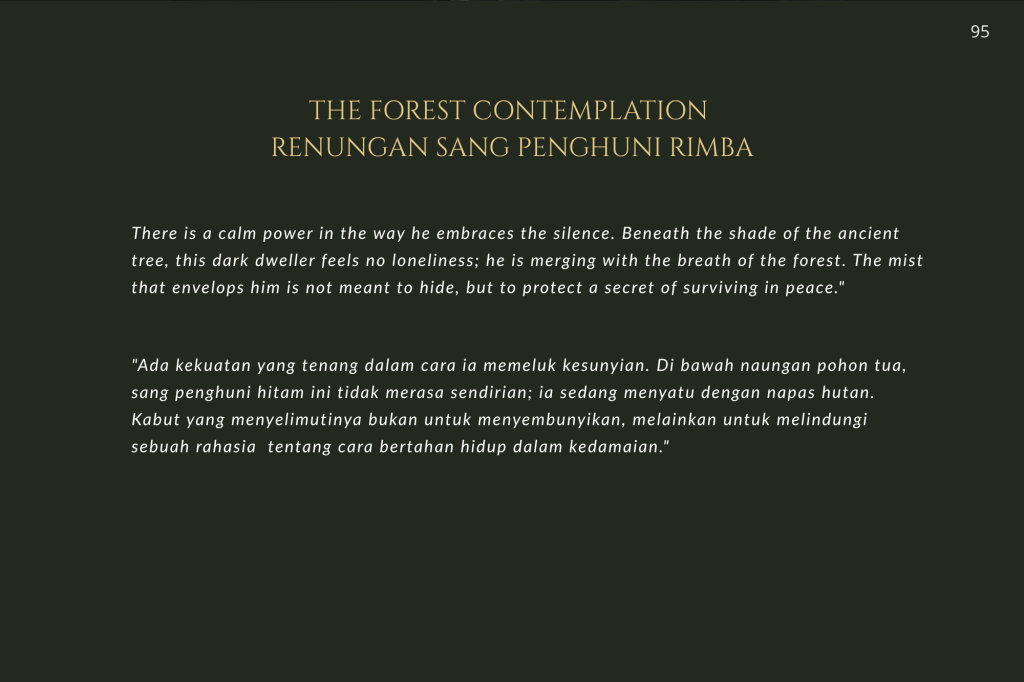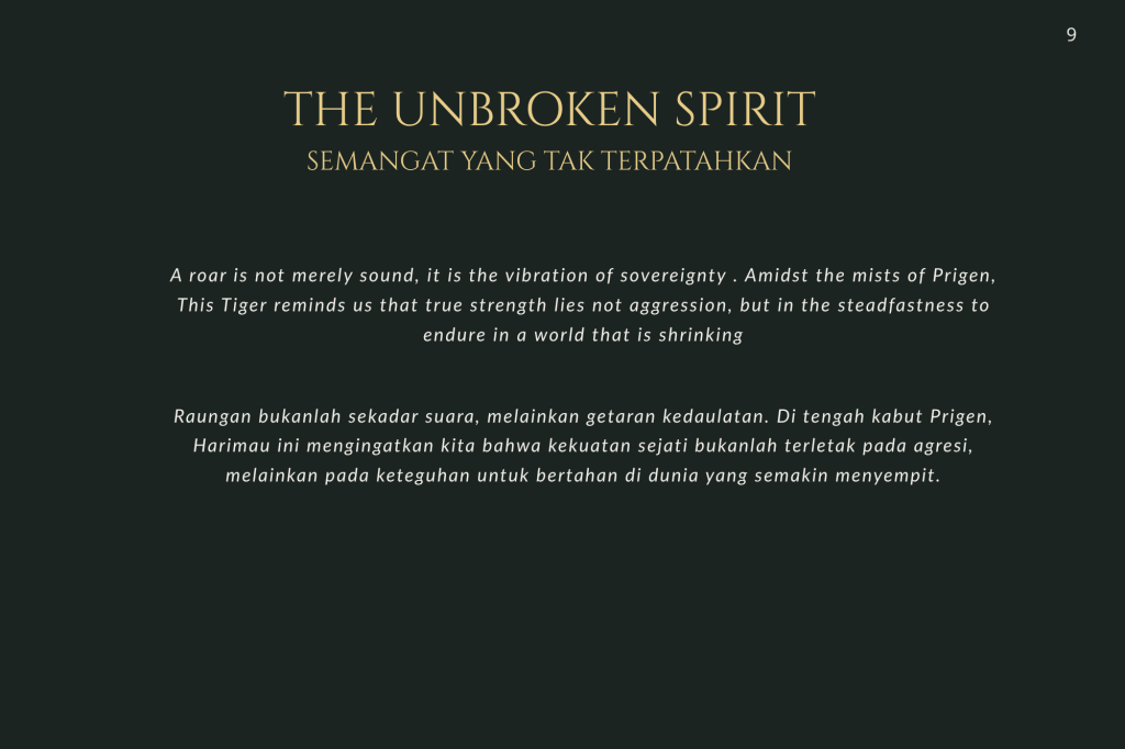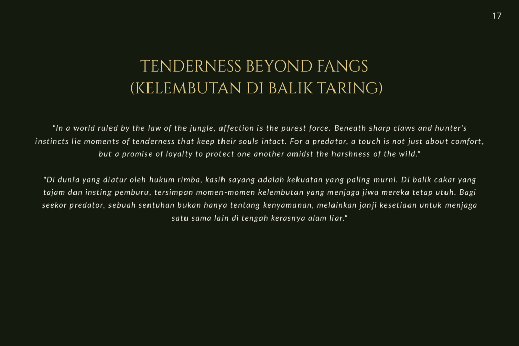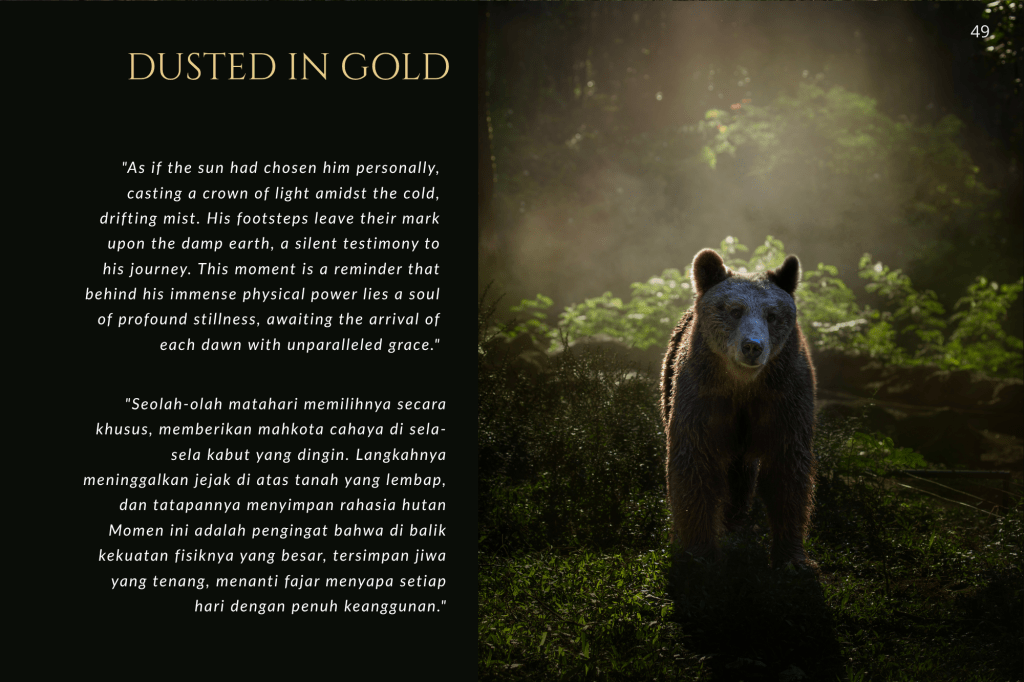 Buku ini, “PRIGEN: The Last Sanctuary”, adalah akumulasi dari kesabaran selama berjam-jam di balik kamera, menunggu momen ketika seekor predator menunjukkan sisi rentannya, atau ketika seekor induk primata memberikan sentuhan paling manusiawi kepada anaknya. Sebagai seorang fotografer, bukan sekadar pencapaian teknis, melainkan tanggung jawab moral untuk menjadi penyambung lidah bagi mereka yang tak bersuara.