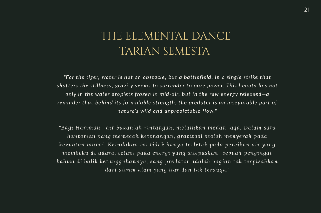 Terima kasih telah bergabung dalam perjalanan visual ini. Mari kita pastikan bahwa auman, derap langkah, dan nyanyian rimba ini tetap terdengar untuk generasi yang akan datang.