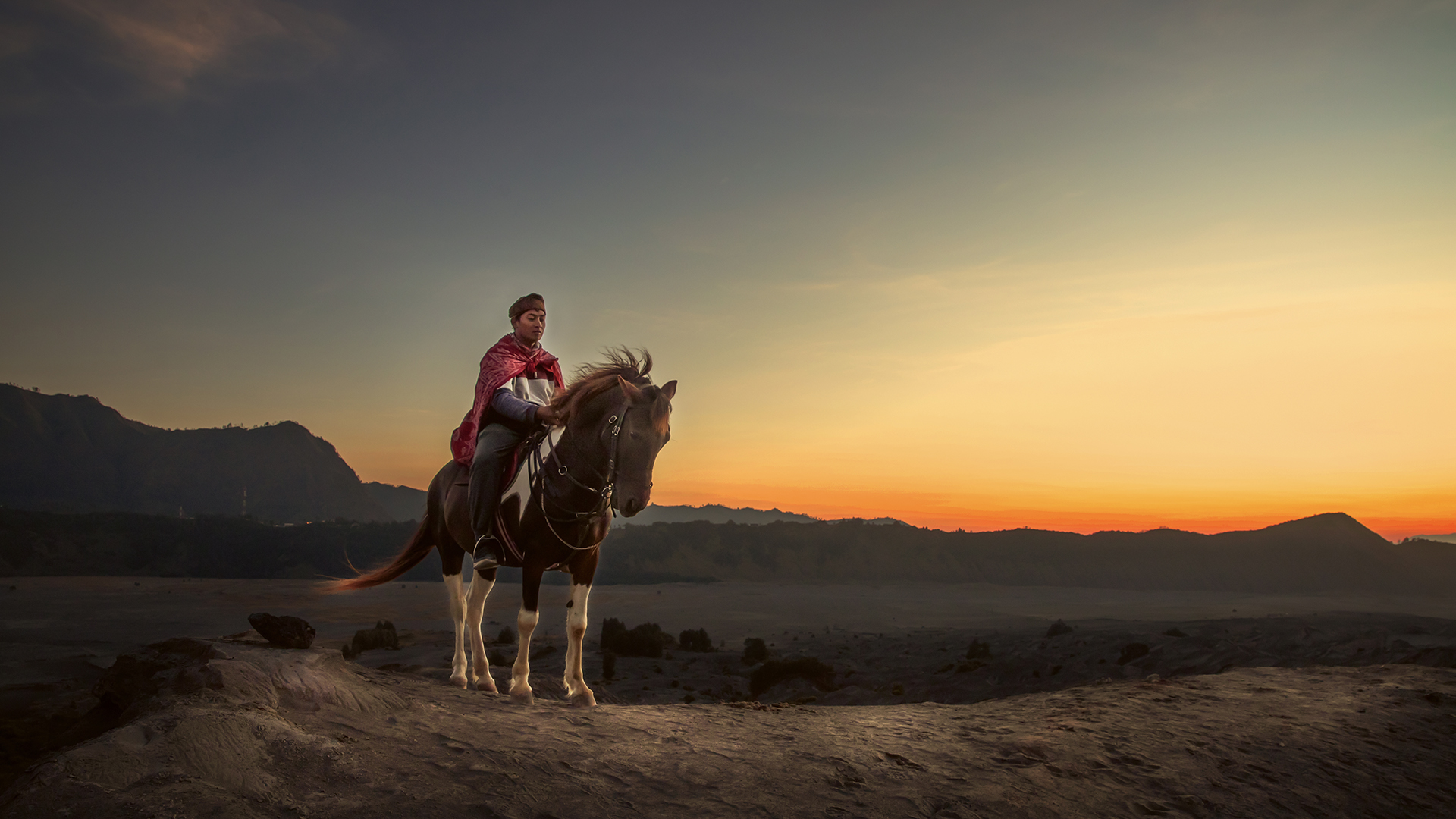 “Saat fajar menyingsing di atas puncak-puncak gunung berapi, penduduk Tengger terbangun, siluet mereka menyatu dengan kuda-kuda andalan mereka di bawah langit yang berapi-api. Bersama-sama, mereka mengarungi pasir yang berbisik, sebuah balet abadi tentang ketahanan manusia dan keagungan alam.”