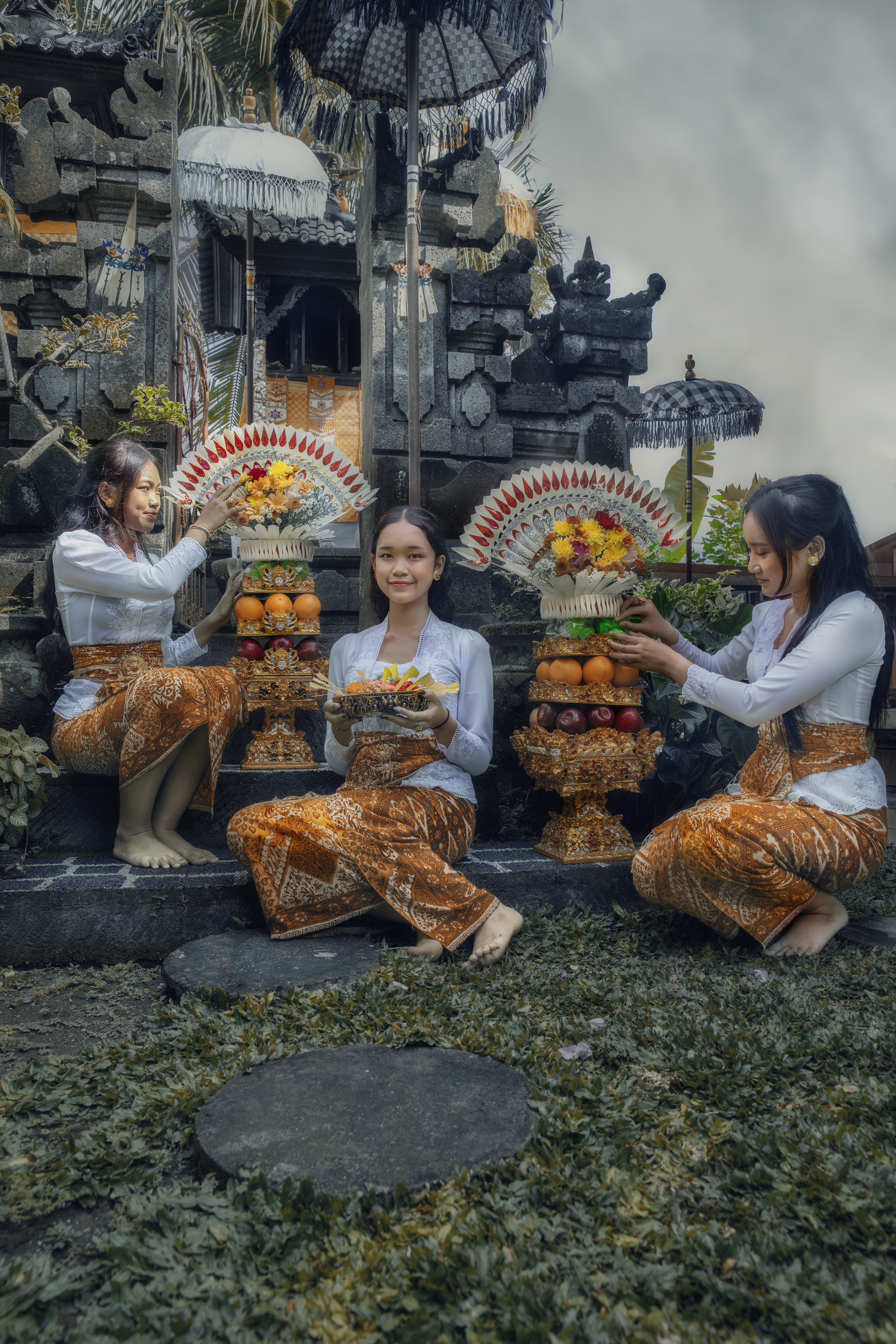 Perjalanan saya di Bali dimulai dengan pertemuan yang memukau: gadis-gadis Bali yang anggun, berbalut busana tradisional. Kecantikan mereka yang tenang dan warna-warni persembahan mereka adalah impian seorang fotografer, sebuah tableau pengabdian yang hidup. Ini kemudian mengarah pada serangkaian potret, menangkap esensi “gadis Bali asli”—raut wajahnya yang lembut, mata yang hangat, dan kekuatan tenang yang memancar dari dalam.
