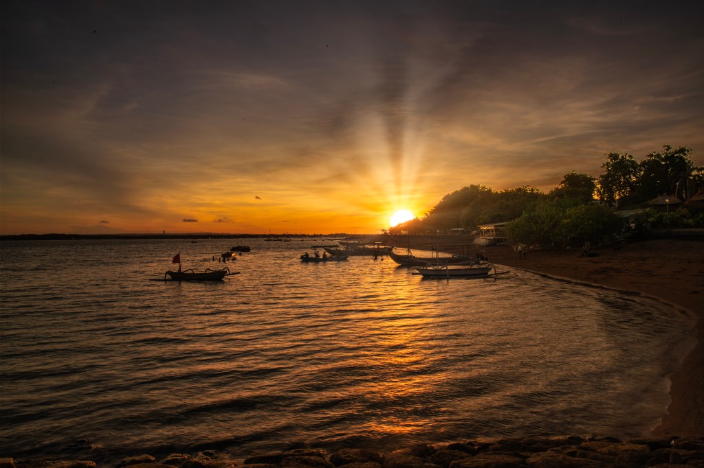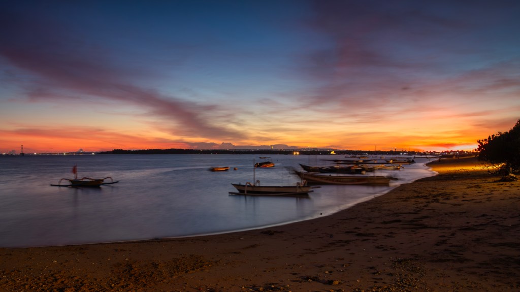Perhentian terakhir saya membawa saya ke pesisir Pantai Sanur yang tenang, di mana hari dimulai dengan matahari terbit yang menakjubkan