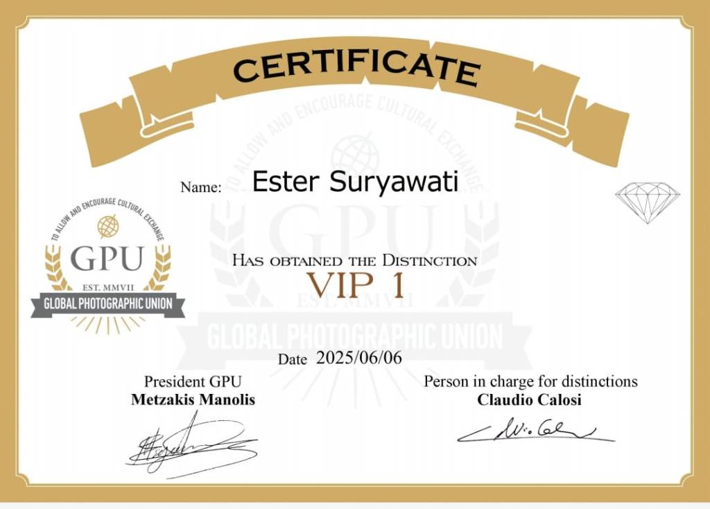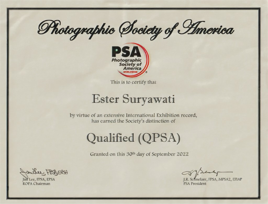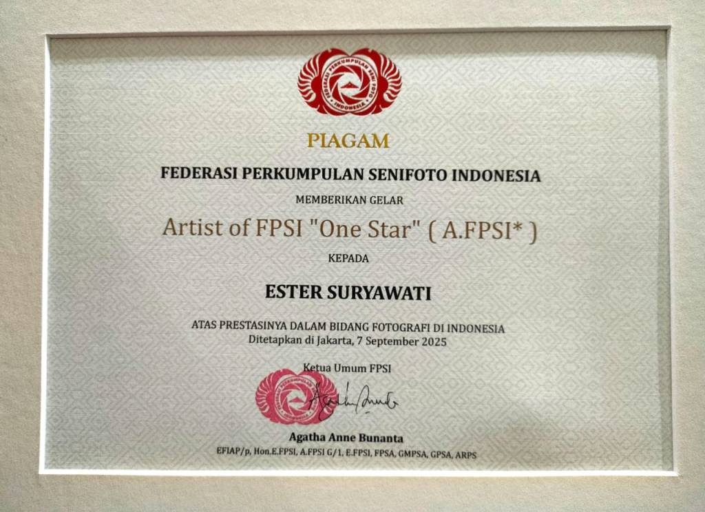 Description: This is a prestigious national distinction in Indonesia, meaning “Expert Photographer of the Federation.” It is awarded to members who have demonstrated exceptional photographic expertise and have made significant contributions to the advancement of photography within the national community.
